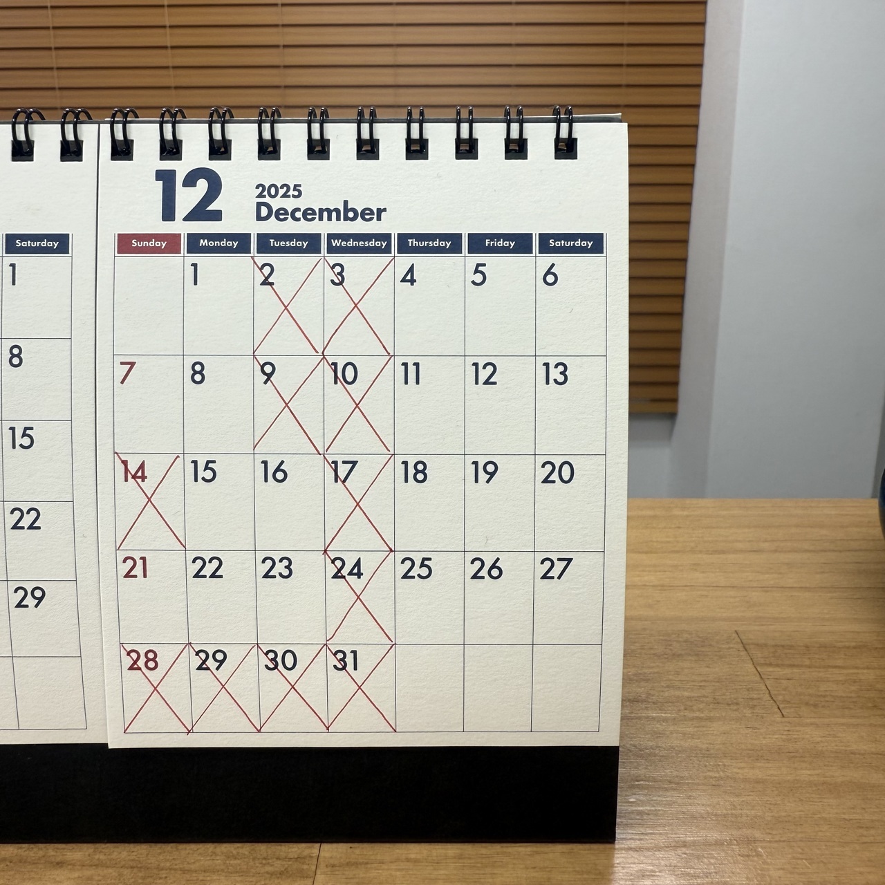 ・12月28日(日)~1月3日(土)までお休みをいただきます。