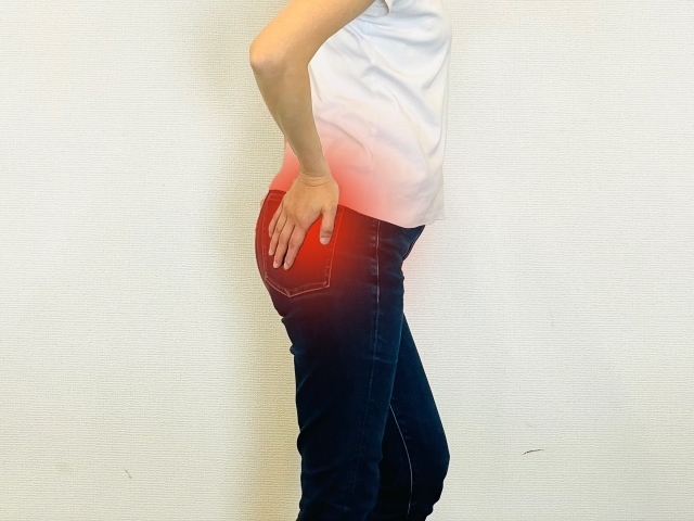 骨盤のつなぎ目である仙腸関節に過度な負担や炎症がおきることで、おしりに痛みが出ることがあります。しゃがむときに寝返りなどに痛みを感じやすいのが特徴です。